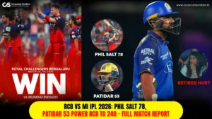 RCB posted a stunning 240/4 at Wankhede powered by Phil Salt’s 78 and Patidar’s 53. MI fought back hard but fell 18 runs short. Full